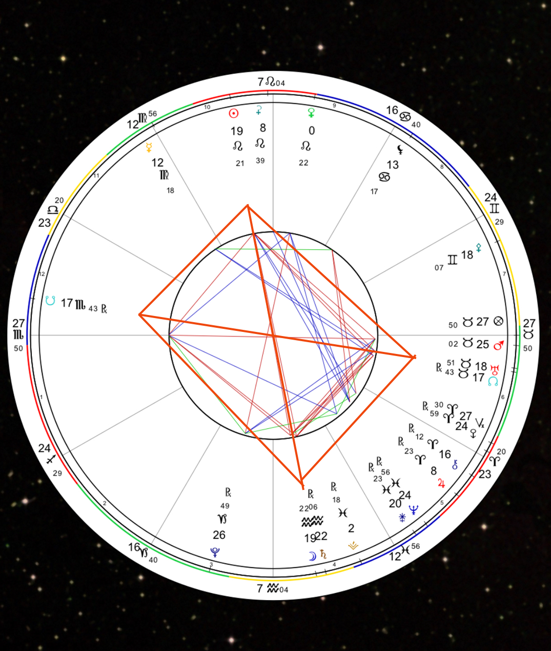 The Fixed Grand Cross is like a dynamic circuit of energy which can have the effect of shape- shifting and rearranging the status quo in a general sense, and in a more personal way if it triggers anything in your own natal chart.